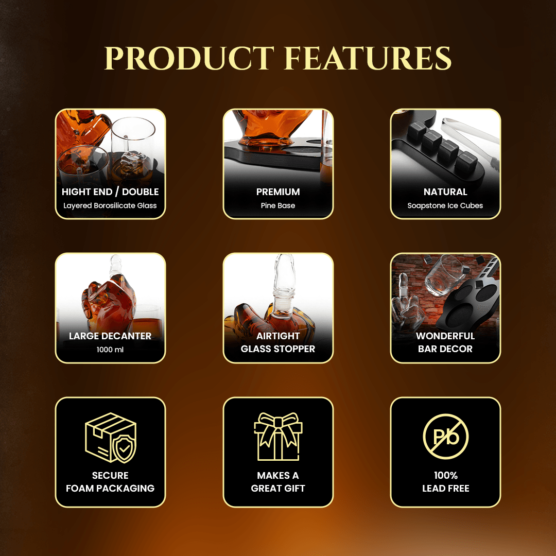 Made from 100% lead-free borosilicate glass, with a durable double-layered design for clarity and strength. The fitted stopper provides a tight seal to keep your spirits fresh and flavourful.